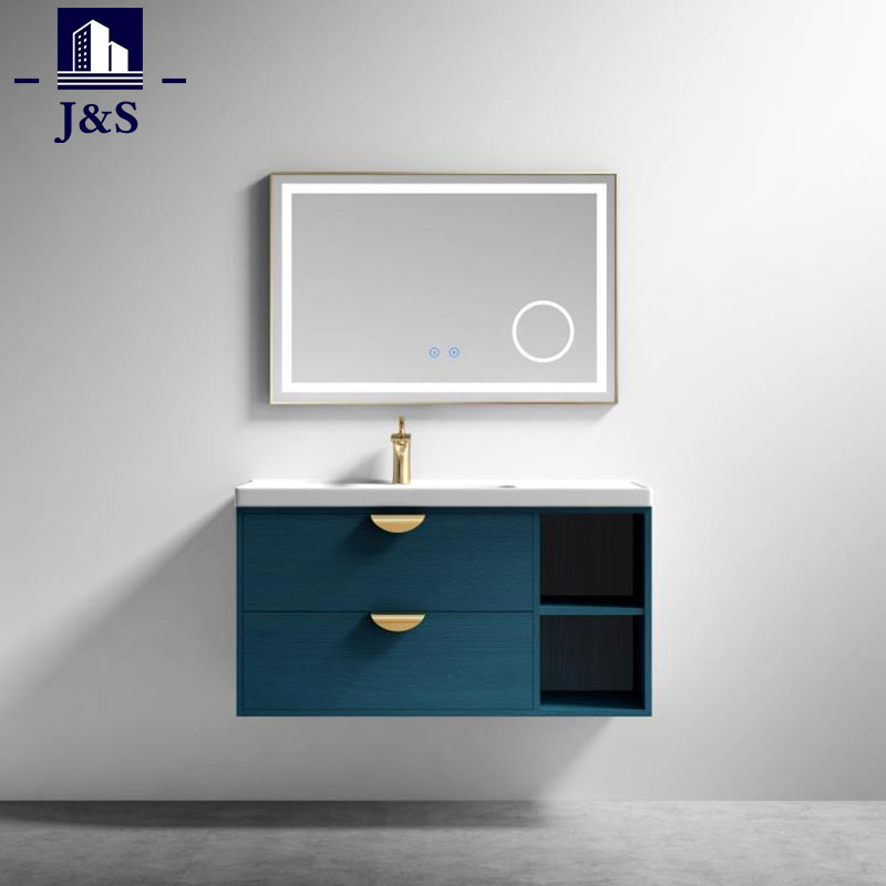 Megfizethető áron kínálunk kis fürdőszobai mosdókagylót. Az új dizájn egy tiszta átmeneti stílus, amely egyensúlyt és harmóniát kölcsönöz minden térnek. Sötétkék szín, arany fogantyú, intelligens LED világítású tükör. A megfizethető kis fürdőszobai mosdókagyló egy fürdőszobai szekrény, amely nagyon népszerű a mai emberek körében.