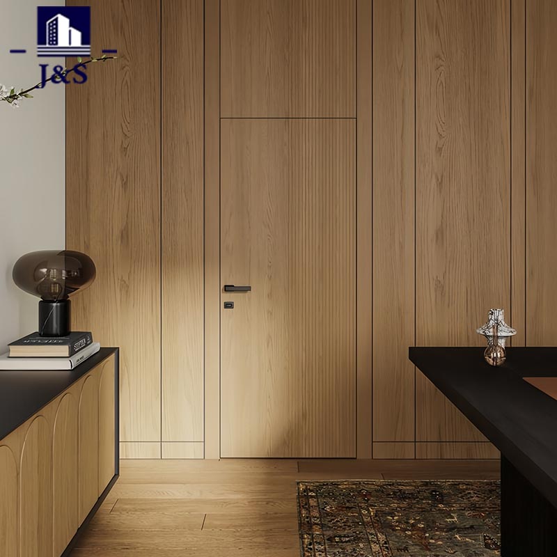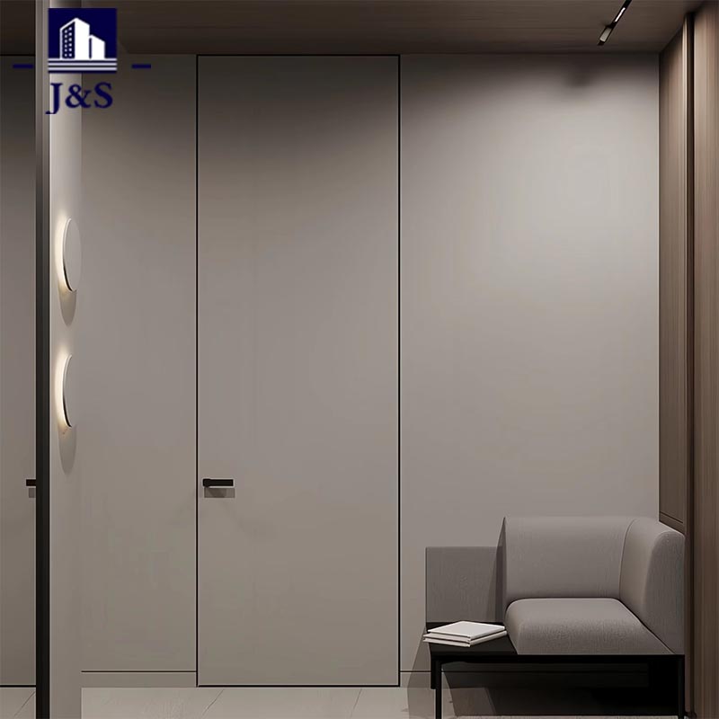 Ezek a belső rejtett hálószobaajtók az egész ház egyedi tervezésének esszenciáját testesítik meg, tökéletesen illeszkedve a fiatalok által kedvelt modern esztétikumhoz. A falba zökkenőmentesen integrált ajtók kiküszöbölik a hagyományos ajtókereteket és a terjedelmes éleket, tiszta, töretlen vizuális áramlást hozva létre, amely elmosja az ajtó és a fal közötti határvonalat. A sima, semleges tónusú felületek és az elegáns fém fogantyúk kiegészítik a környező minimalista bútorokat és a lágy környezeti világítást, nyugodt, kifinomult életmódot tükrözve. Ez a kialakítás a térbeli koherenciát és a visszafogott eleganciát helyezi előtérbe, így a legjobb választás a fiatal háztulajdonosok számára, akik értékelik az egyszerűséget, a funkcionalitást és az összefüggő, rendetlen lakókörnyezetet. A közönséges ajtókat finom, stílusos elemekké alakítja, amelyek fokozzák az általános térérzetet és a modernitást.