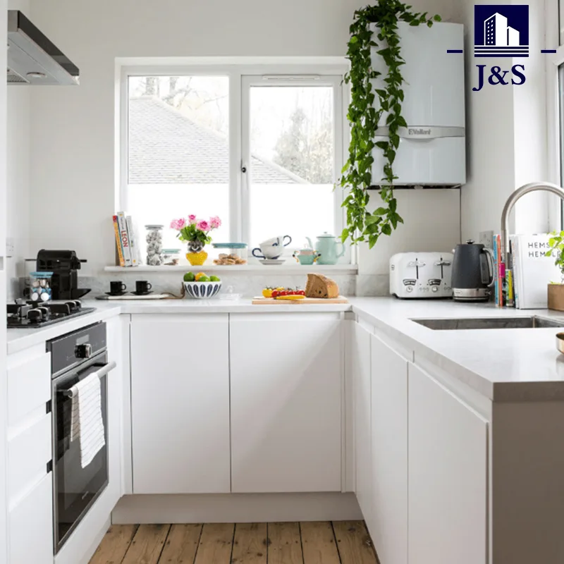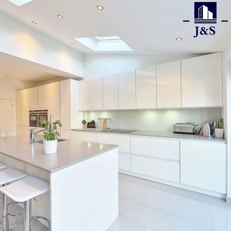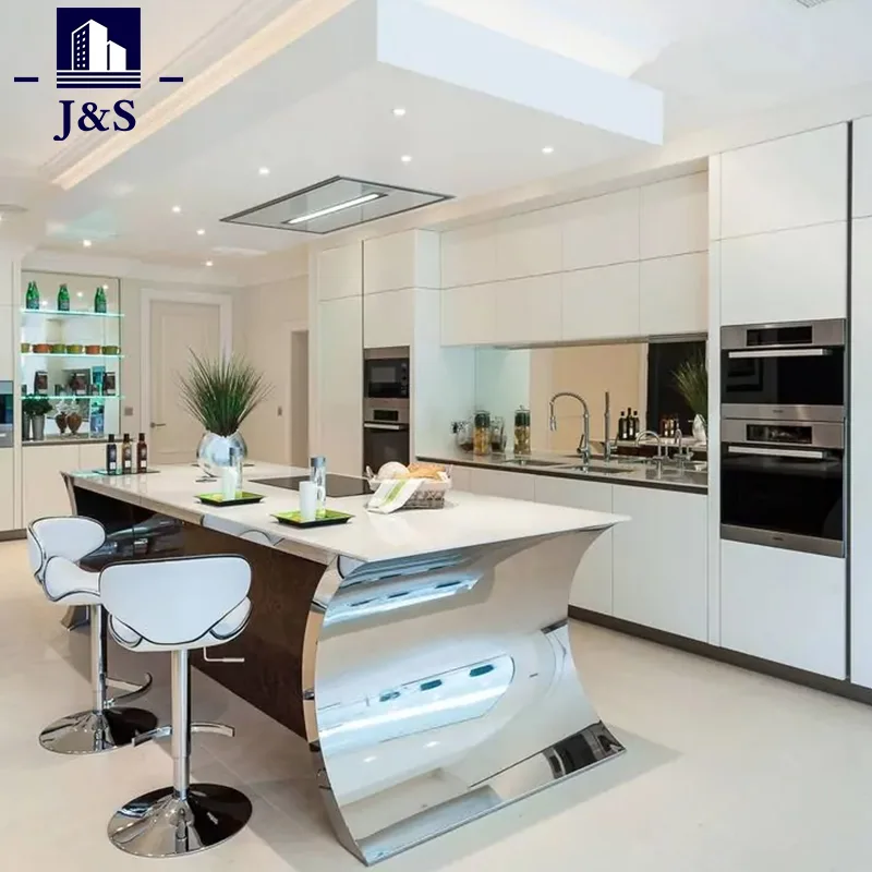 A J&S új modern fehér konyhai szekrényt, csúcsminőségű lakk fehér ajtót kínál, alacsony költséggel És tartós minőség karcállósággal.