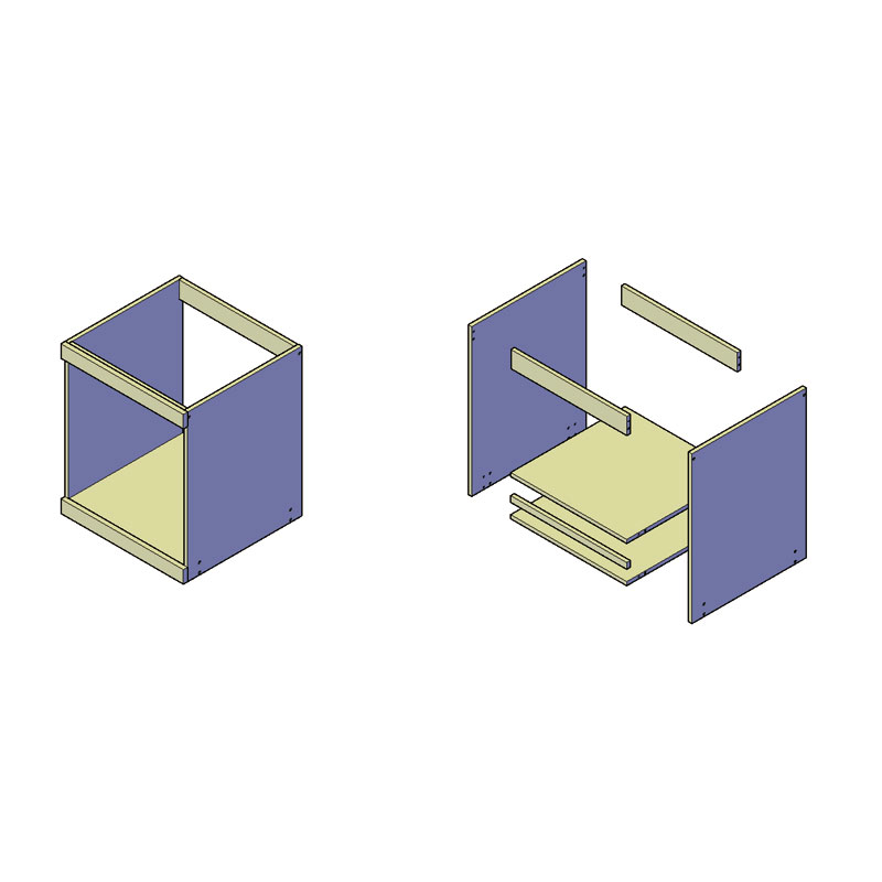 ☞A sütőaljzat lapos csomagolású szekrényeinek váza 18 mm-es melamin fehér forgácslapból készül.